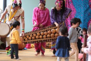 ・パフォーマンスエリアと観客スペースに区切りを作らない。動き出しても楽器を触りに来てもOK!時に小さな子供達が出演者となりながらそこにいる皆と空間や音を楽しみます。
