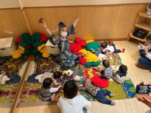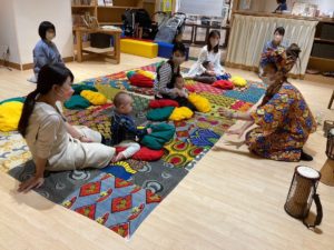 写真は、博多阪急にあります親子カフェでのはじめてのアフリカンタイム。