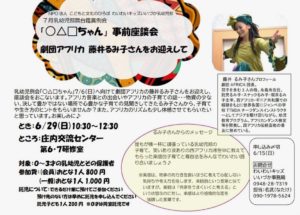 とき:6/29(日)10:30~12:30ところ:庄内交流センター第6・7研修室対象:0~3才の乳幼児とその保護者参加費:(会員)おとな1人800円(一般)おとな1人1,000円
