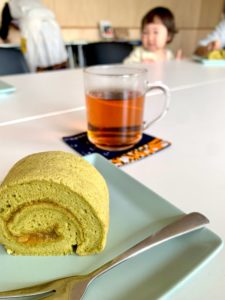 今回待っている保護者たちのために、ささやかですがカフェスペースを作り、おいしいお茶とお菓子の販売をします。