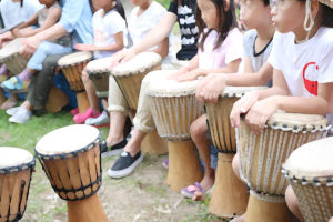 感じて、叩く。西アフリカを代表する楽器、ヤギ皮でできたハンドドラム「ジェンベ」を叩こう。音の振動や、手に伝わる感触を通して、 「リズム」に出会っていきます。